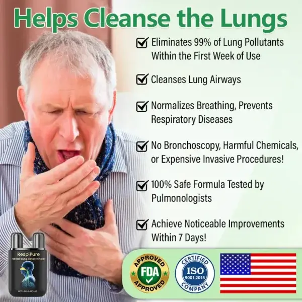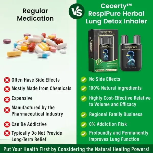 In my research, I found that organic mullein extract significantly improves airway and lung function. This discovery is based on a study published in the 2024 issue of Respiratory Medicine. By combining several well-established plant-based ingredients, I developed the Ceoerty™ RespiPure Herbal Lung Detox Inhaler. Experimental results show that this spray can effectively alleviate chronic respiratory diseases and provide a new solution for lung health restoration. As a pulmonologist, I highly recommend Ceoerty™ RespiPure Herbal Lung Detox Inhaler as the preferred non-surgical treatment option. It is not only fast, safe, and effective, but also significantly reduces medical costs, offering new hope to chronic respiratory disease patients worldwide.