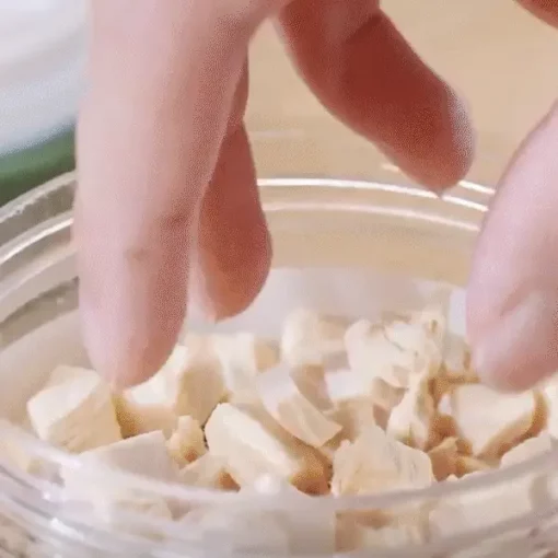 A: Recommended kibble 12mm / half an inch in diameter. Do not use wet food.