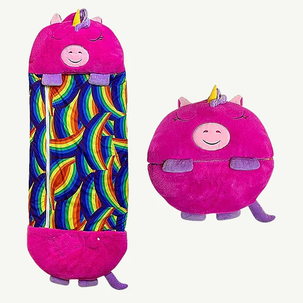 When it’s time to sleep, simply unzip the sleeping bag and your child can snuggle up inside their favorite animal and take a nap.