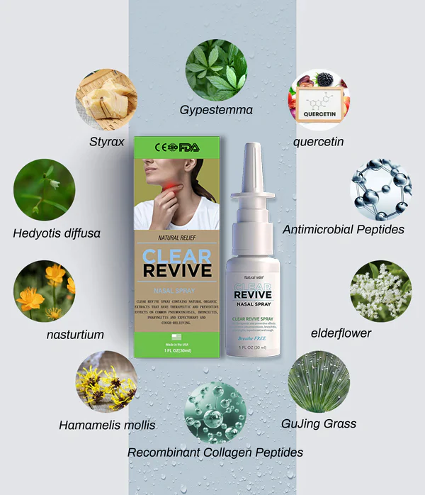 Clear Revive® Organic Herbal Lung Cleansing Nasal Spray is an easier way to channel and expel mucus and waste from the lungs, cleanse the lungs and upper airways, and completely repair damage caused by allergies, asthma, dust and smoking in 8 weeks A weakened respiratory system, the chance to breathe easily again.Relieve the symptoms and sequelae of lung cough caused by (COVID‑19) virus