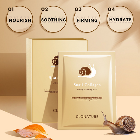 Snail Secretion FiltrateMatrixyl 3000+ Complex contained in CLONATURE™ Korean Snail Collagen Lifting & Firming Mask will penetrate well into your skin, stimulate subcutaneous collagen productionreduce free radicals, enhance antioxidant capacity,help skin fight aging and reduce collagen loss, effectively improve skin firmness.