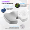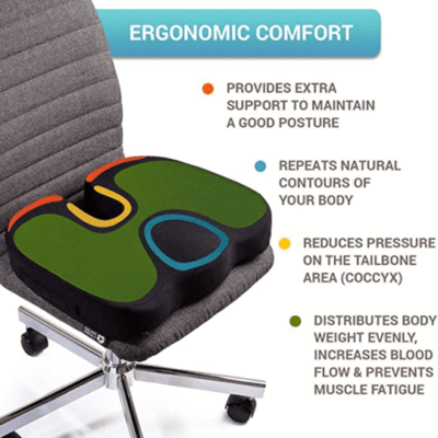 This seat cushion was designed in a u-shape to provide ergonomic benefits as recommended by orthopedists to help reduce pain. The unique design alleviates pressure on these problem areas, making it easier to sit all day without having pain. The seat cushion has curves in all of the right places and the memory foam allows it to contour perfectly to support your body.