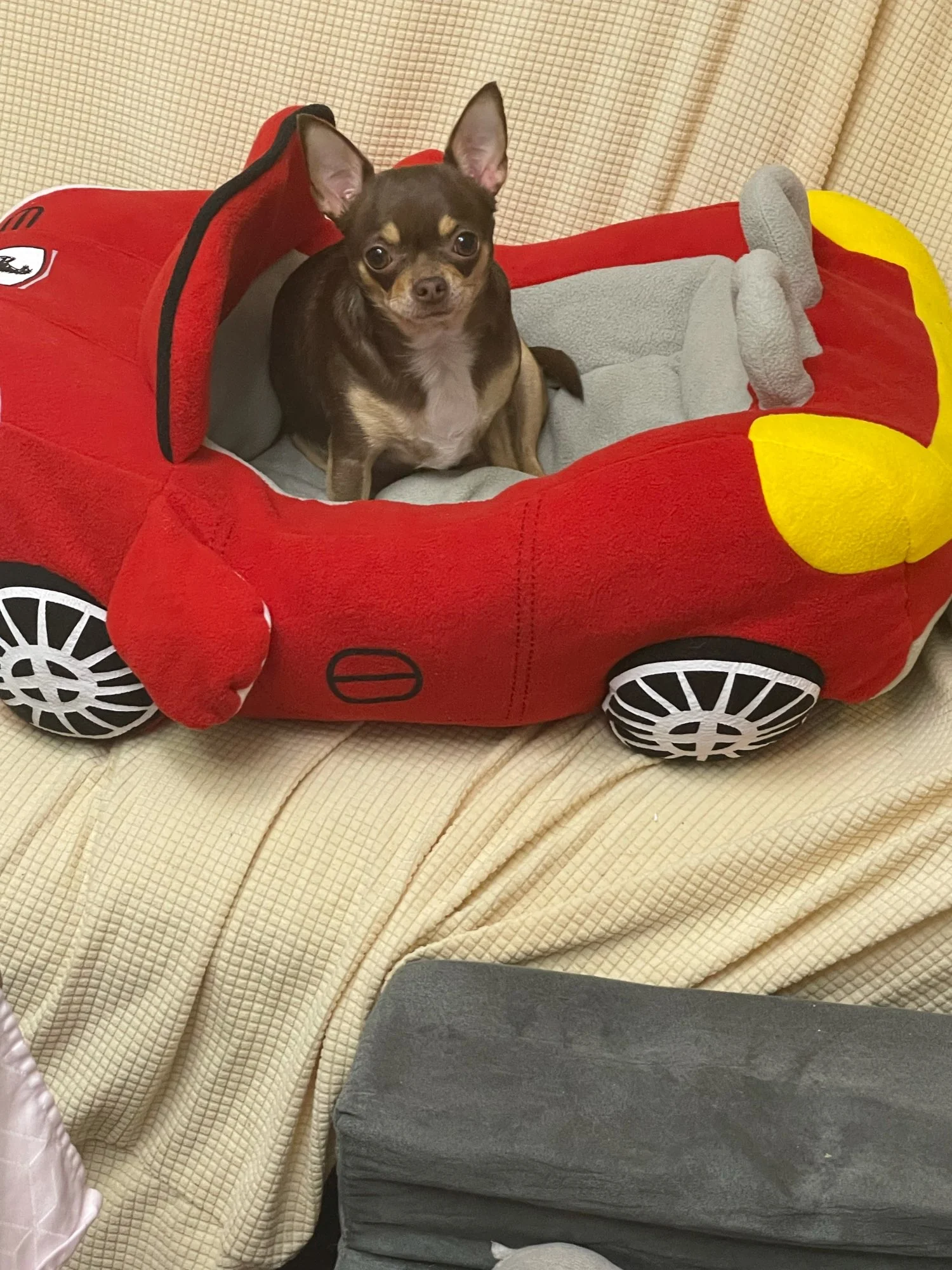 This product is so adorably cute and stylish! I purchased for my toy poodle and had to return after discovering the poodle was no longer available. So, instead I purchased a standard poodle and realized that he, Sebastian will not get much use out of the car. This is a great product for the price and soft and comforting. You will not be disappointed! If only the car would hold up to 80 pounds I would have kept this item!