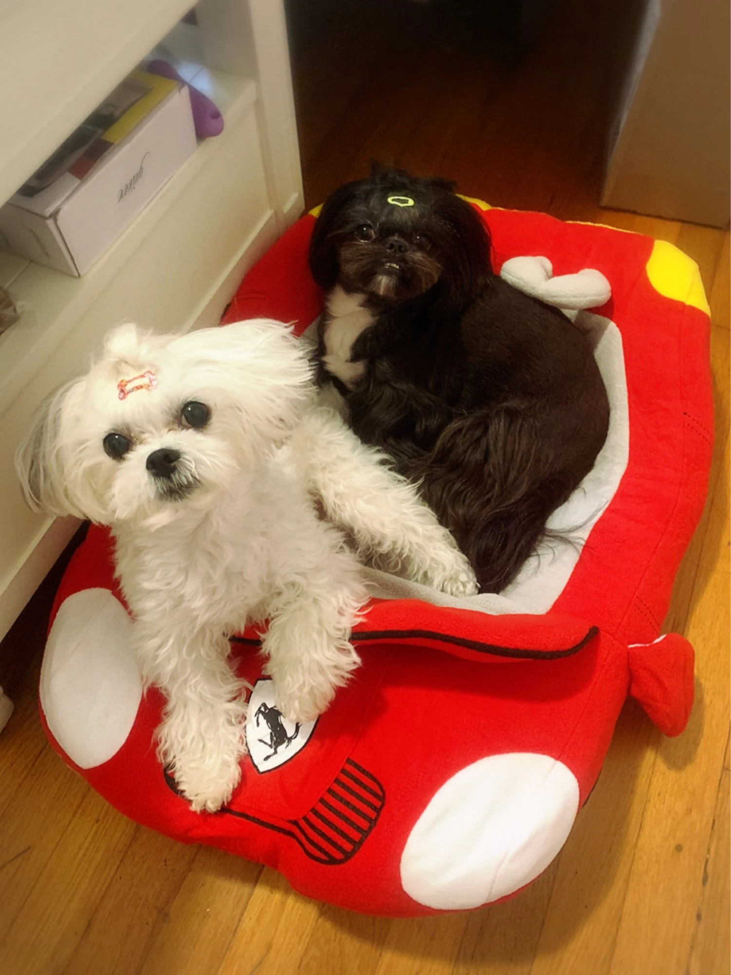 A cute sports car design with mobile pillows, providing soft and comfortable accommodation for your furry friends.