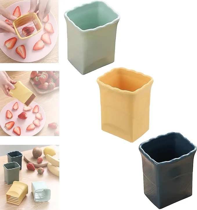 - Easy to Clean: The strawberry cup slicer is easy to clean. It is square and has no dead corners for cleaning. Rinse with clean water or dishwasher after use. Let it dry naturally for next use.