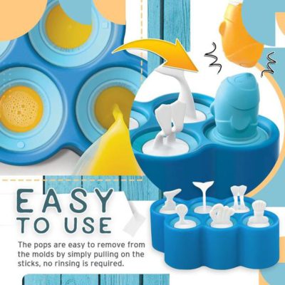 It features different designs like scuba divers, octopus, fish and more, all in one mold. The reusable popsicle sticks are also creatively designed to look like feet or fish tails. Made from food-grade silicone, it’s flexible and non-stick so popsicles demold with ease.
