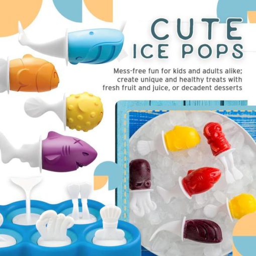 - Assorted Designs – Features different popsicle designs like octopus, scuba divers and fish, all in one mold.