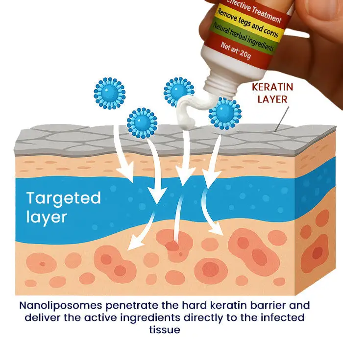 Cvreoz® FemGenital Wart Remover Cream is built on a scientifically engineered Dual-Core Wart Removal System that works in three stages. First, keratin-dissolving liposomes deliver cutinase enzymes deep into the skin to break through the tough keratin layer covering the wart. Once past this barrier, pH-responsive microspheres detect the wart’s acidic environment (pH < 5.5) and rupture, releasing a potent blend of salicylic acid and tea polyphenols that gently decompose the wart tissue without harming surrounding skin. Finally, the formula includes glucan polypeptides, a powerful immune activator that stimulates Langerhans cells, enhancing the body’s natural ability to eliminate the HPV virus—without causing inflammation or side effects.