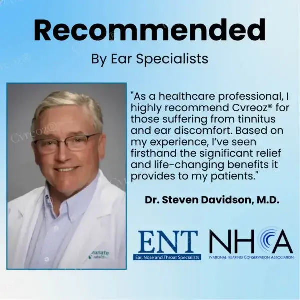 Medical professionals now recognize Cvreoz® as a breakthrough solution for tinnitus relief, backed by science. Dr. Steven Davidson, a leading ENT specialist, praises its advanced formula for calming overactive auditory signals at the root of tinnitus.