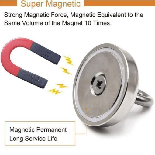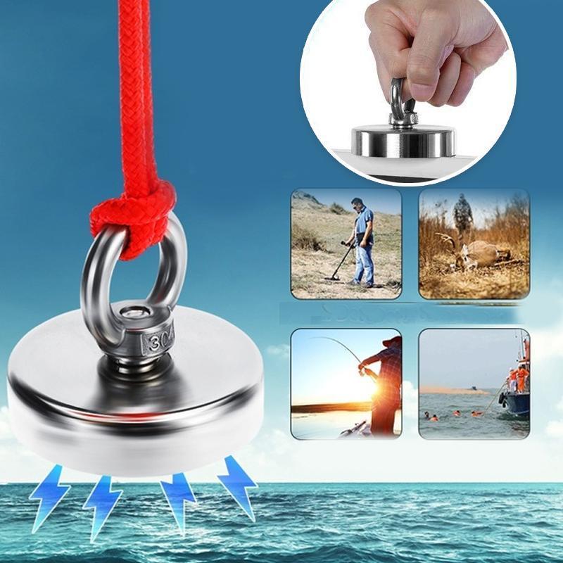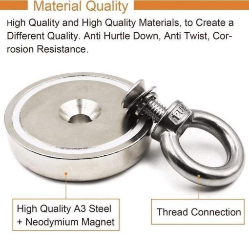 This fishing magnet is made of a super strong neodymium rare earth magnet that has a pulling force up to 180 kg.