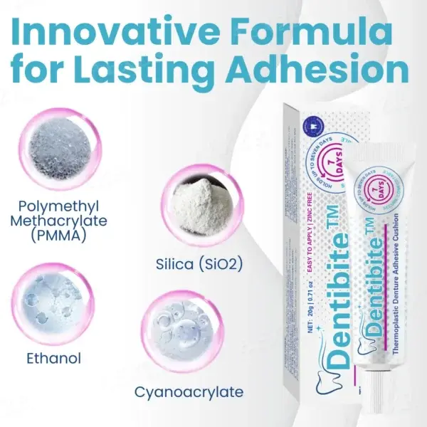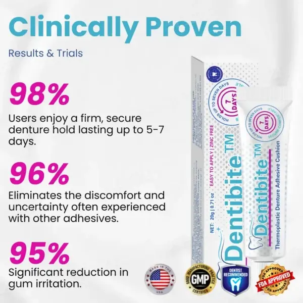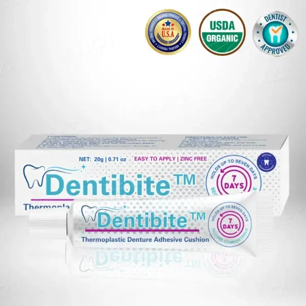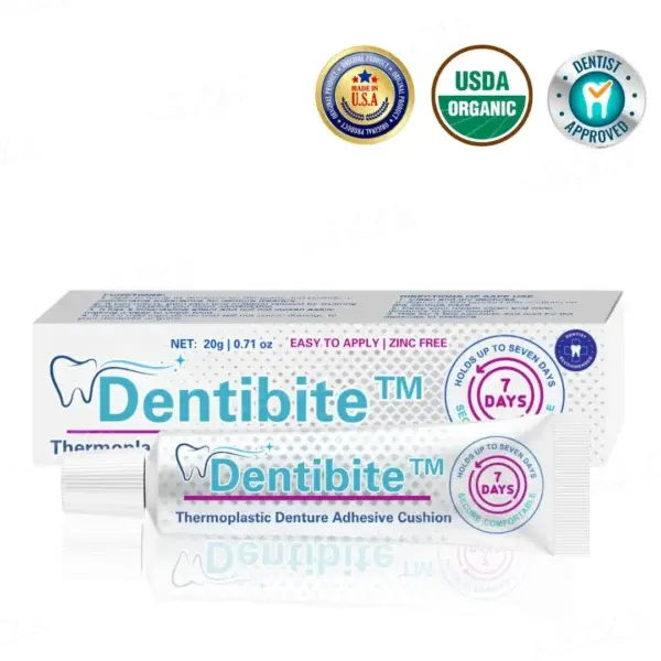 Dentibite™ Thermoplastic Denture Adhesive Cushion keeps your dentures secure and comfortable for up to 7 days, preventing slipping and irritation.