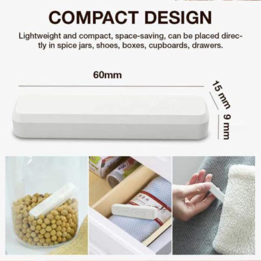 This diatomaceous earth disiccant is lightweight and compact, space-saving, can be placed directly in spice jars, shoes, boxes, cupboards, drawers.