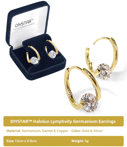 The DIYSTAR Lymphvity Germanium Earrings are designed to harness the power of germanium to promote lymphatic vitality and weight loss. These earrings incorporate small germanium balls that come into contact with the skin around the earlobes.