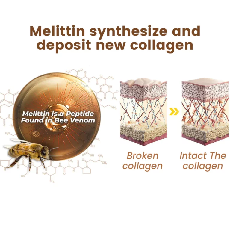 Bee venom is believed to have a muscle-relaxing effect on the skin due to one of its components, melittin . Melittin is a peptide found in bee venom that is known to inhibit the release of certain neurotransmitters. By inhibition, bee venom can reduce muscle contractions, resulting in muscle relaxation . It goes a long way in reducing the appearance of these wrinkles and giving the skin a smoother and more youthful appearance.