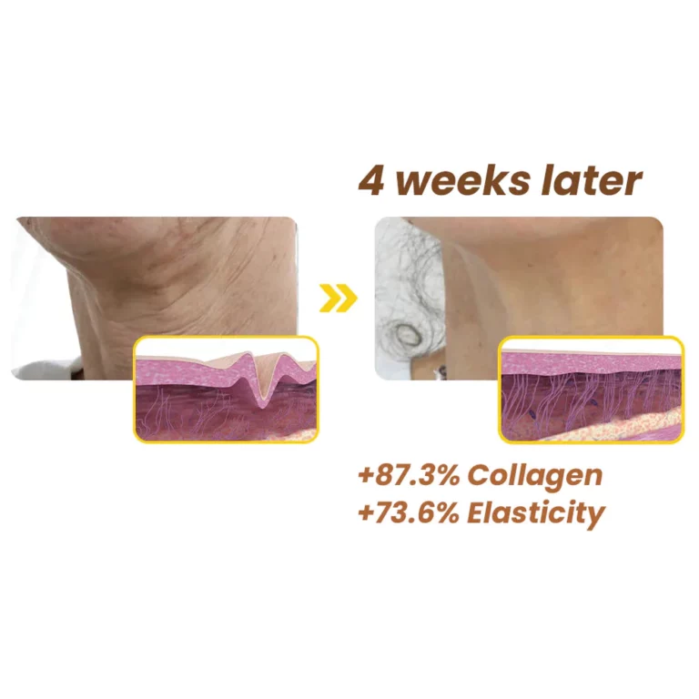 As we age, the skin gradually loses collagen and elastin, proteins that are responsible for maintaining the elasticity and firmness of the skin . Additionally, the production of these proteins decreases over time. The loss of collagen and elastin leads to a loss of skin structure and support, resulting in sagging skin and the appearance of wrinkles .