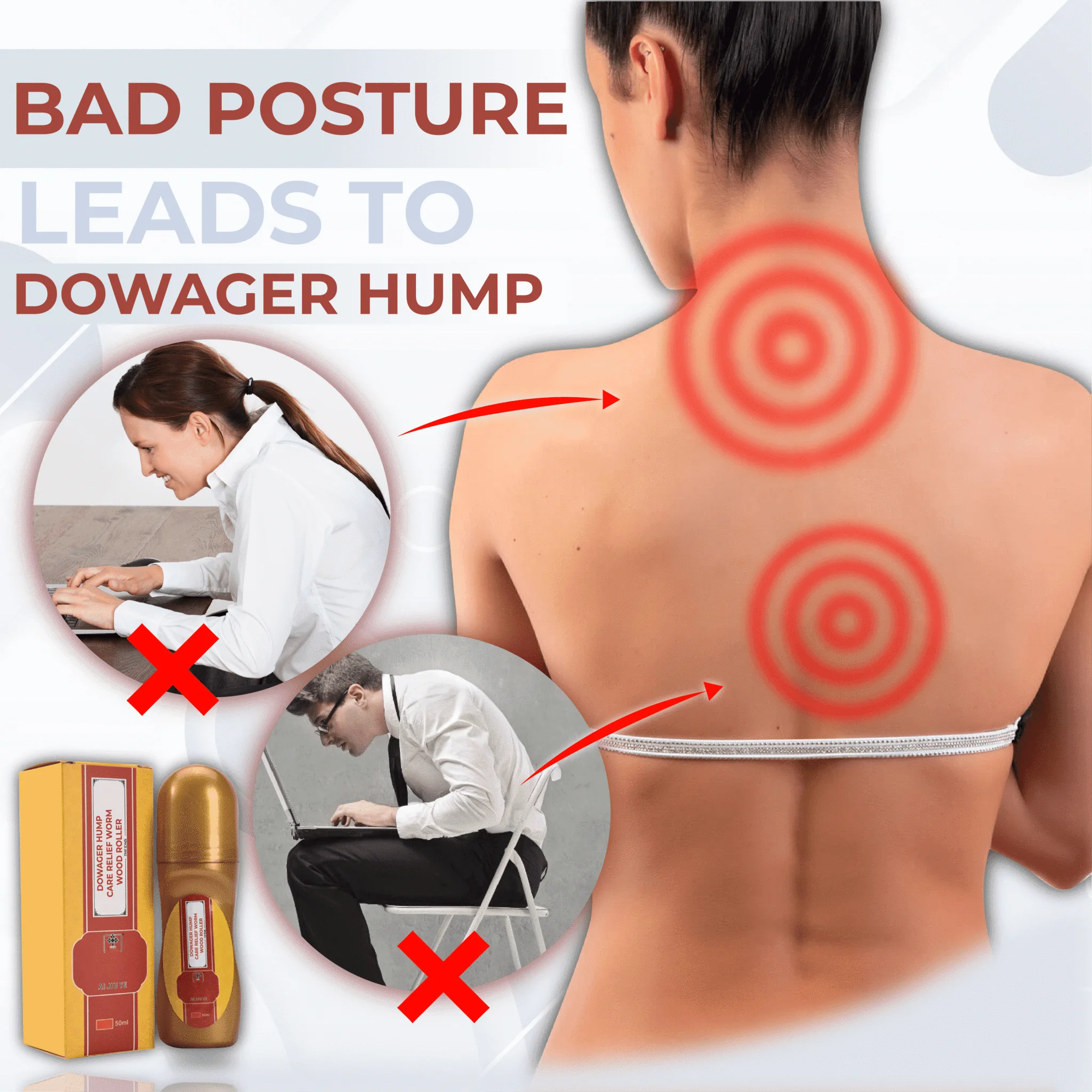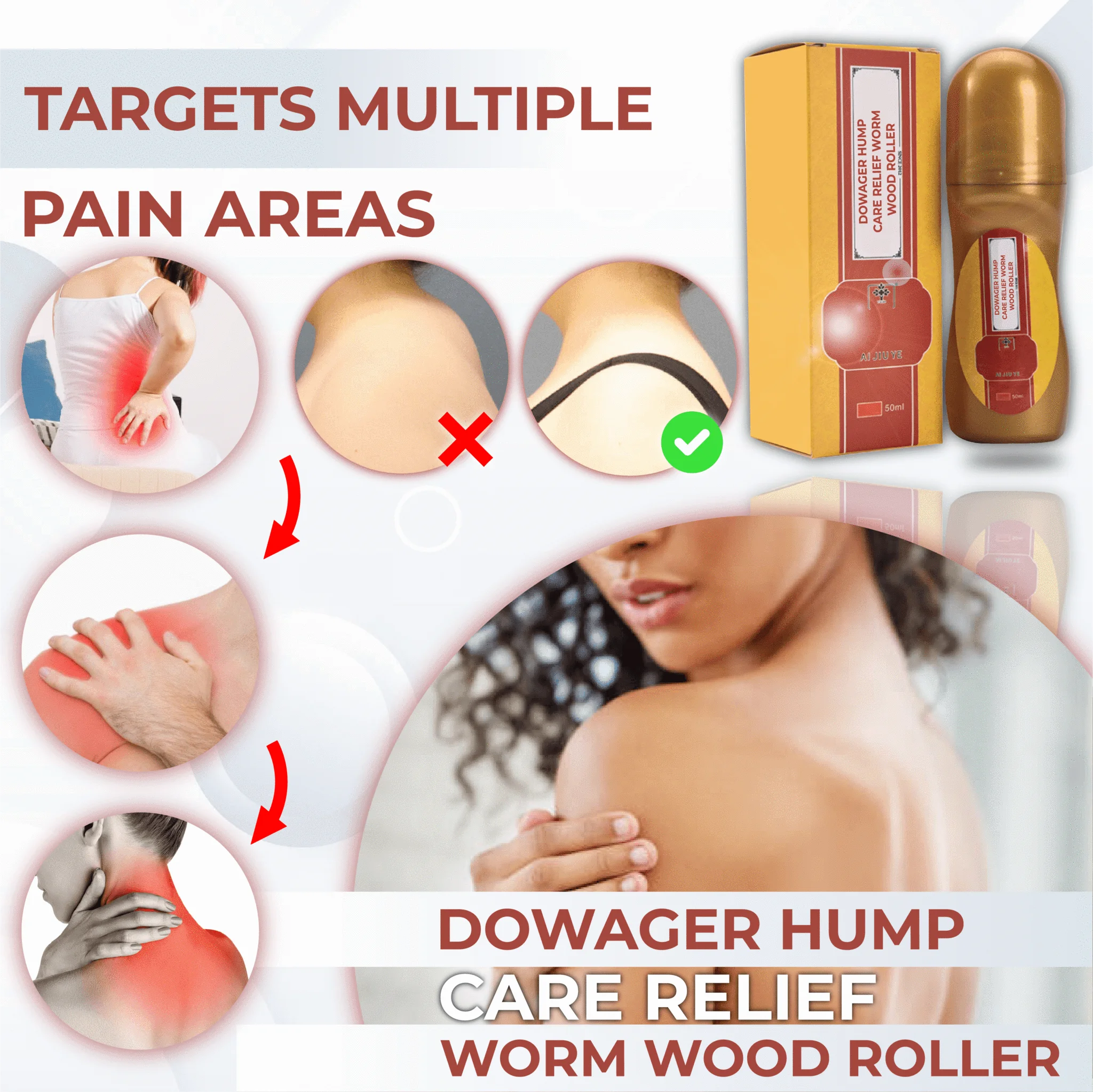 You’re lucky as we have the perfect solution to melt that and relief you from pain! Introducing the DowagerHump CareRelief WormwoodRoller