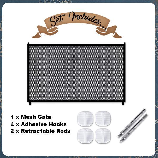 Comes with 4 super adhesive hooks. Simply fix them and hang the mesh gate! No drilling is required. - Retractable Rods