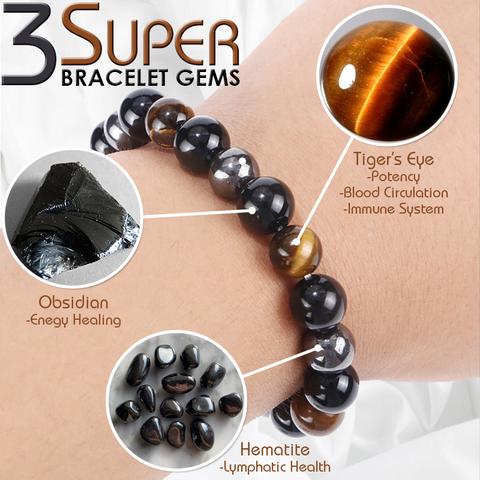 DuraMen bracelet comes with the combination of 3 super gems! Tiger’s eyes promotes ultra potency, better circulation and stronger immunity; hematite promotes healthy lymphatic system and obsidian helps with energy healing!