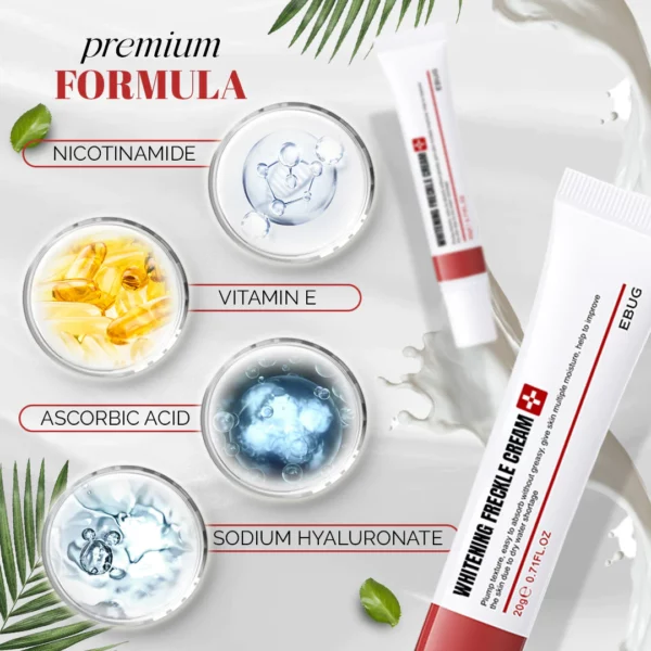 - It’s a natural whitening cream that helps fade freckles and other marks on your skin