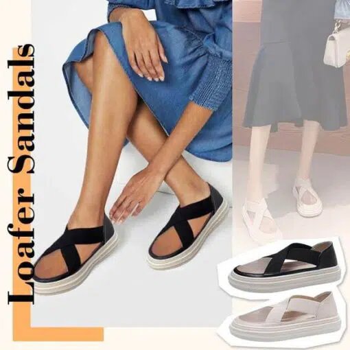 Fashionable elastic cross straps designed to stay stable and look good fit the foot without strangling the foot.