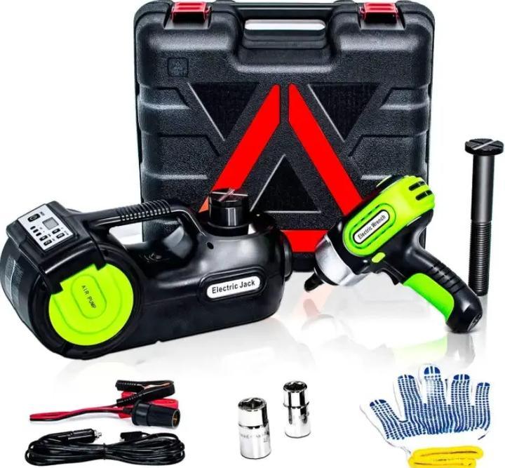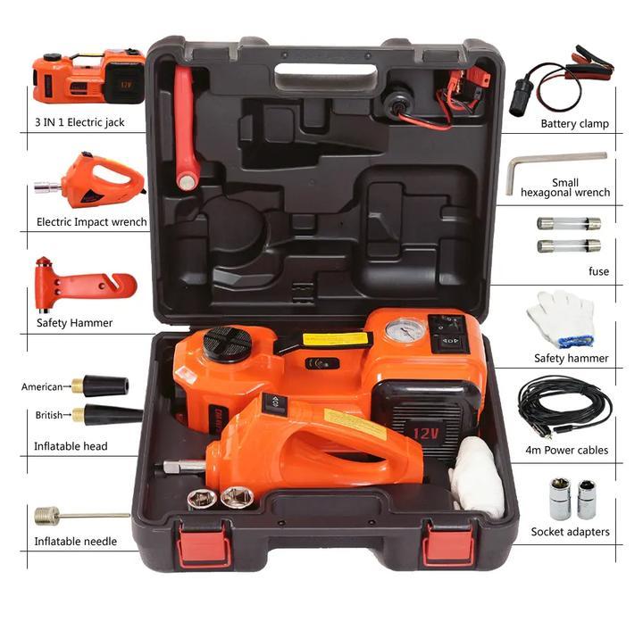- Car jack kit is an indispensable helper for garages, farms, highways and long-distance travel. For people who are far away from car repair shops or who like long-distance travel, you must not miss this electric jack tire change emergency tool. From now on, you will bid farewell to the tedious manual disassembly, and any adult can easily change the tire without asking for help from others or going to the repair shop to change the tire.
