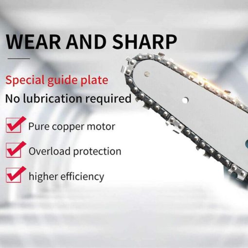 Rechargeable, lightweight and portable electric chainsaw. 6 hours of autonomy, does not cause any damage to the bark.