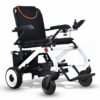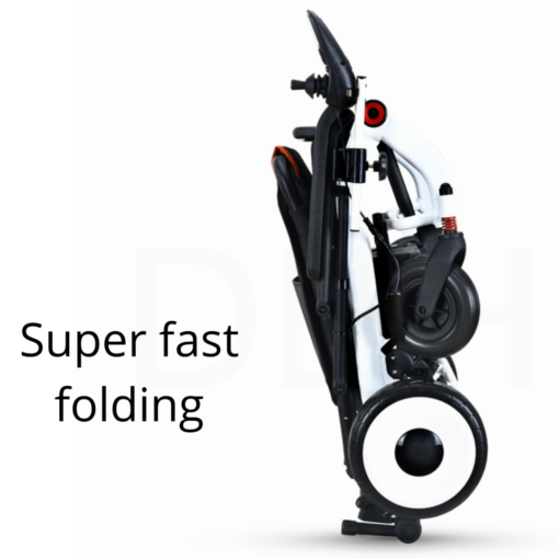 The chair is ergonomically designed for maximum comfort. This motorized wheelchair’s shock absorbers ensure a smooth ride. The heavy-duty front casters and forks are made to handle the impact of surface and weight.