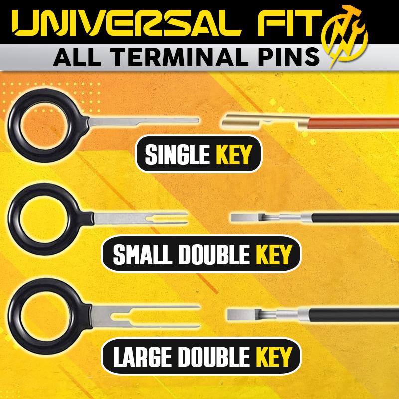 The is a universal tool kit with different pin keys (single pins, double pins and casting tools) for all connector terminals which can be used for cars, motorcycles, other electronic devices etc.