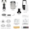 Included accessories: 58mm razor dosing tool, 58mm stainless steel portable tongs, 1-cup and 2-cup single and double wall filter baskets, integrated tamper, 480ml stainless steel milk canister, cleaning kit, water hardness test strips, water filter holder and water filter