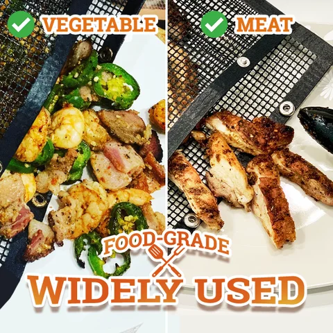 Can be heated to 600°F (316°C) safely. Non-toxic, odorless, prevent food from sticking, and grill evenly.