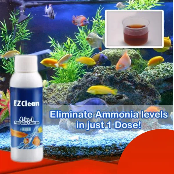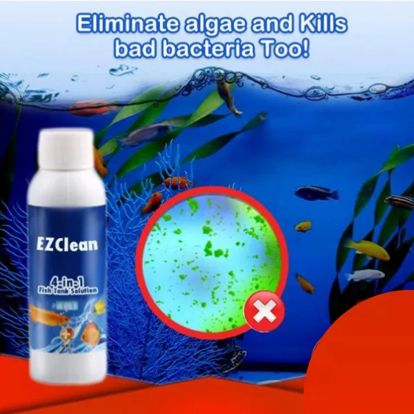 Eliminate algae and prevent fish from having disease in just 1 Dose with this EZClean 4-in-1 Fish Tank Solution.