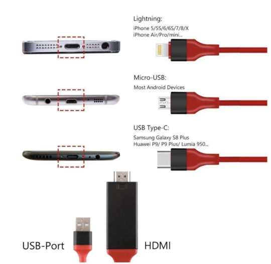 This is a FAST CONNECTING HDMI CORD that PROVIDES an INSTANT VIEW of your PHONE DIRECTLY on your TV SCREEN. It has a HIGH-SPEED TRANSMISSION and STABILITY for a SMOOTH STREAMING, It is made of HIGH-QUALITY STANDARD GOLD-PLATED USB for a MAXIMUM CONDUCTIVITY, CORROSION RESISTANT, and STABLE SIGNAL TRANSMISSION.