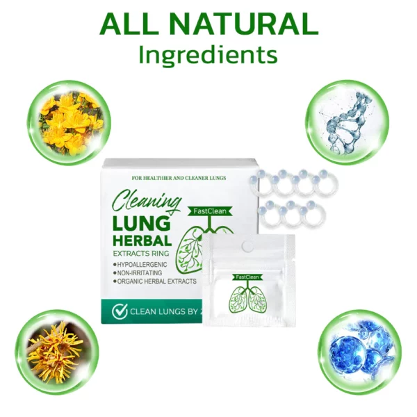 The FastClean Cleaning Lung Herbal Extracts Ring is an innovative product designed to aid in the removal of mucus and waste from the lungs, allowing for easier breathing and improved respiratory health. With its herbal extracts, the ring helps to cleanse the lungs and upper airways, reducing the risk of respiratory infections and damage caused by allergens, asthma, dust, and smoking.