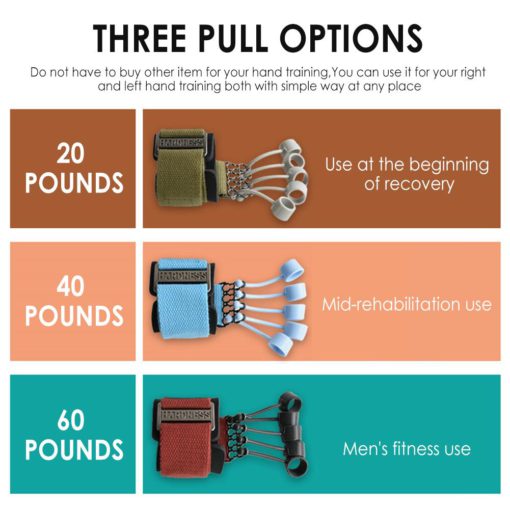 【COST EFFECTIVE】: Do not have to buy another item for your hand training. You can use it for your right and left-hand training both in a simple way at any place. Three tension options: 20 lbs, 40 lbs, 60 lbs. The different colors of this product correspond to different strengths. You can choose the correct training device according to your needs.