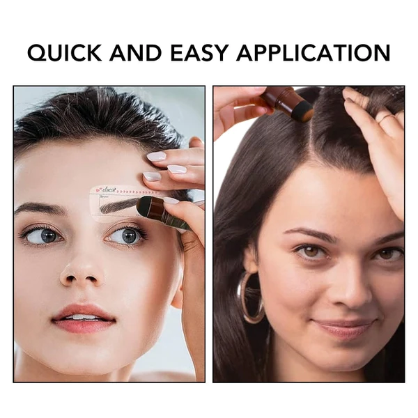 Vielseitige 3-in-1-Funktionalität: Fivfivgo™ 3-in-1 Haaransatz Abdeckpuder Stempel bietet eine vielseitige Lösung, indem er verbreiterte Haarlinien, dünner werdende Kopfhaut, kahle Stellen und unebene Bereiche effektiv kaschiert. Er dient auch als Augenbrauen-Make-up, um spärliche oder kahle Brauen mit den mitgelieferten Brauenschablonen aufzufüllen, und fungiert als Farbbehandlungslösung zum Abdecken von grauem oder weißem Haaransatz.