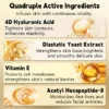 4D-Hyaluronsäure: 4D-Hyaluronsäure sorgt für eine mehrschichtige Hydratation und durchdringt verschiedene Hautschichten, um die Feuchtigkeit optimal zu speichern. Das Ergebnis ist eine prall gefüllte, glatte Hautoberfläche, die feine Linien mildert und der Haut ein jugendliches, geschmeidiges Aussehen verleiht.