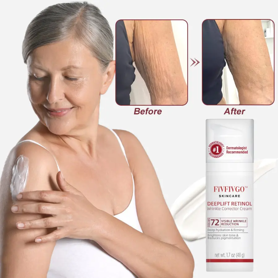 “For years, I’ve struggled with sagging skin on my arms, primarily due to aging and weight fluctuations after losing weight. I had tried various products with little success until a friend recommended Fivfivgo™ DeepLift Retinol Wrinkle Corrector Cream, and I decided to give it a shot.