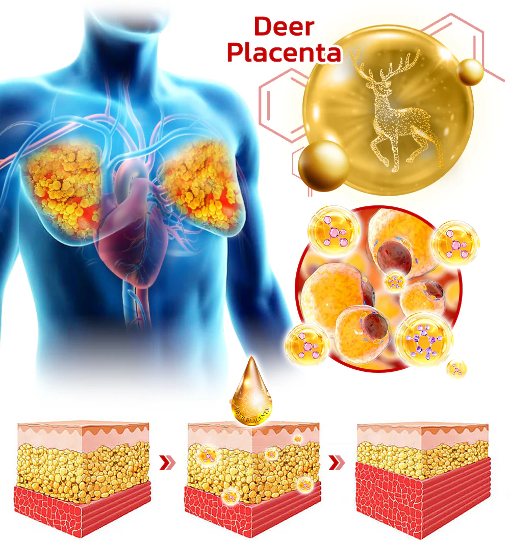 Hirschplazenta: Hirschplazenta ist reich an bioaktiven Verbindungen, fördert die Durchblutung und stimuliert die Lipolyse, wodurch Fett im männlichen Brustbereich effektiv abgebaut wird und eine festere, besser geformte Brust entsteht.