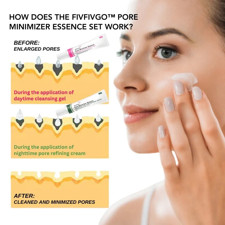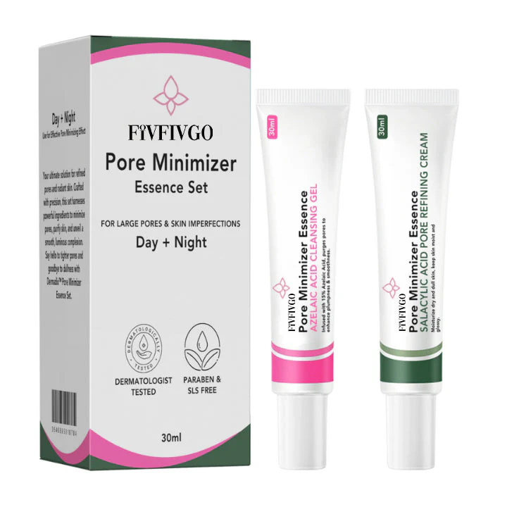Entdecken Sie glattere, klarere Haut mit dem Fivfivgo™ Porenminimierer Essenz-Set. Dieses leistungsstarke Set enthält eine porenminimierende Essenz, die das Erscheinungsbild von Poren effektiv reduziert und Ihre Haut makellos aussehen lässt.