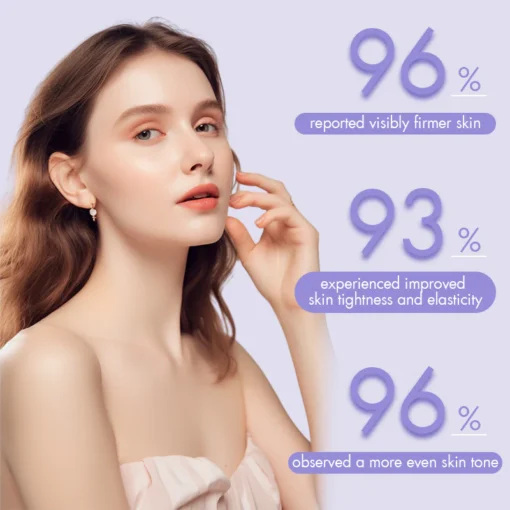 Erleben Sie sichtbare Ergebnisse mit unserer Fivfivgo™ Tighten & Lift Neck Cream. Benutzer berichten von einer deutlichen Verbesserung der Hautfestigkeit, Elastizität und des Gesamterscheinungsbildes.