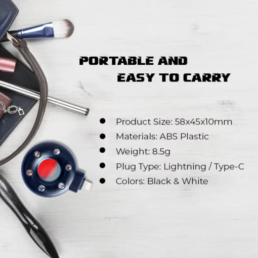 - Kompaktes Design: Dank des kompakten und tragbaren Designs des Detektors können Sie ihn bequem überall hin mitnehmen. Es passt problemlos in Ihre Hosen- oder Handtasche und stellt sicher, dass Sie Ihr Werkzeug zum Schutz der Privatsphäre immer zur Hand haben.