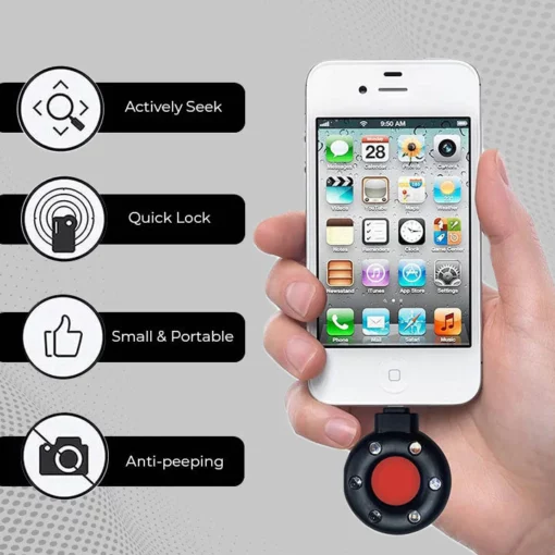 - Erkennung versteckter Geräte: Mit dieser erweiterten Funktion kann der Detektor versteckte Kameras und Geräte identifizieren, die Ihre Privatsphäre gefährden könnten. Mit seiner hochmodernen Technologie kann er sogar versteckte oder getarnte Kameras erkennen.