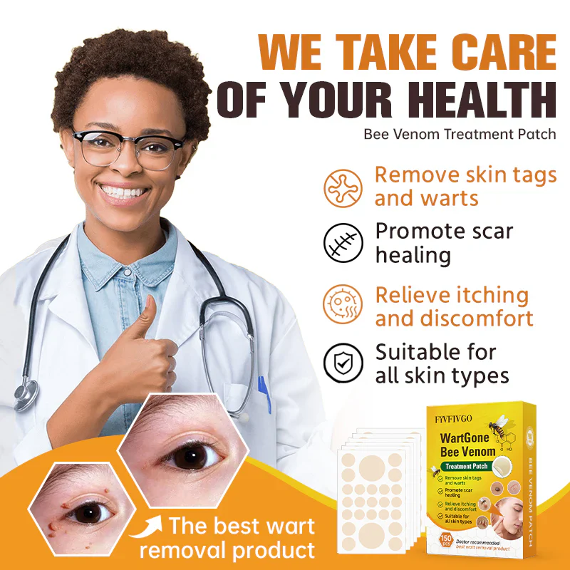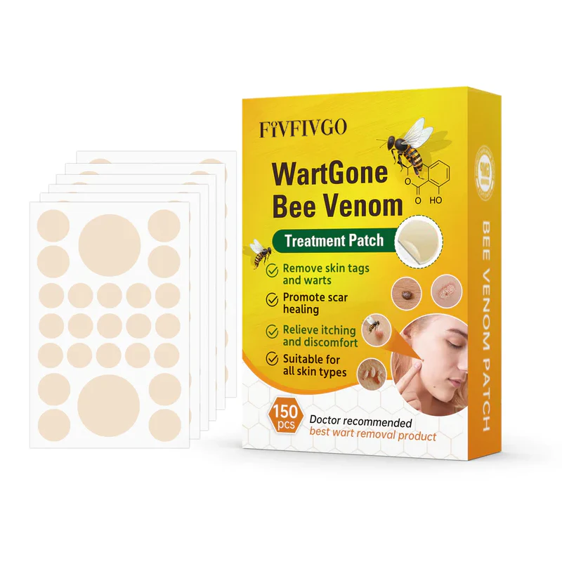 Das Fivfivgo™ WartGone Bienengift-Behandlungspflaster  wurde entwickelt, um Menschen dabei zu helfen, verschiedene Hautunreinheiten wie Hautflecken, Muttermale, Warzen und Flecken einfach und effektiv zu entfernen. Dieses Produkt enthält eine konzentrierte Mischung aus leistungsstarken Inhaltsstoffen , insbesondere aus Bienengift gewonnene Wirkstoffe, die durch das Pflaster in die Haut gelangen. Diese fortschrittliche Formel baut Melanin ab, zerstört Hautflecken und Warzengewebe, wodurch sie schrumpfen, sich lösen und schließlich auf natürliche Weise abfallen.