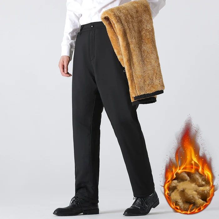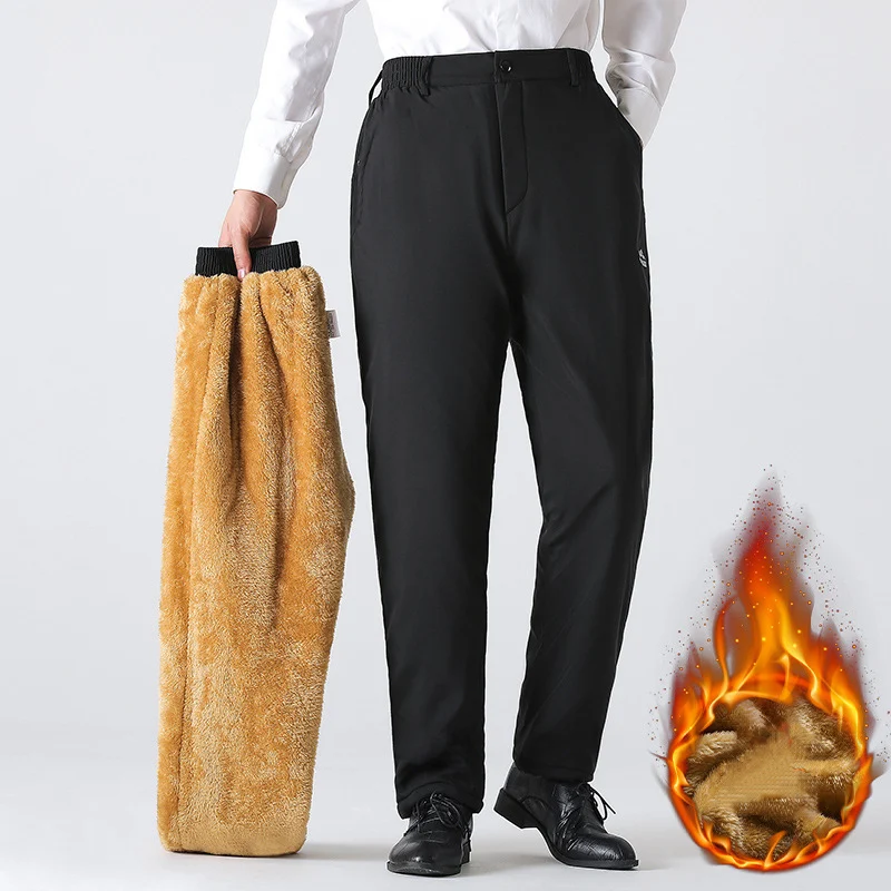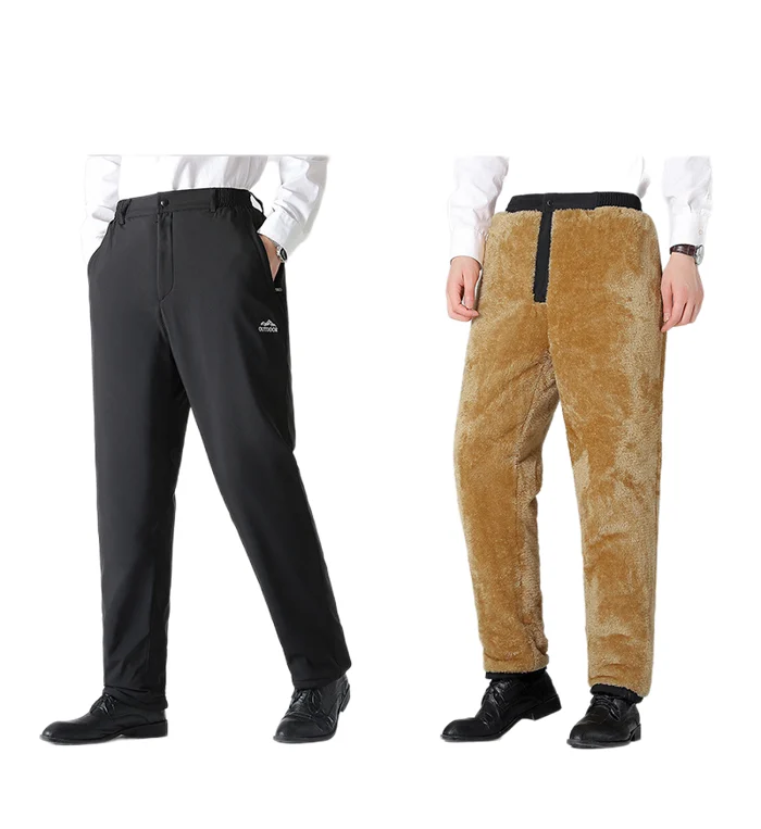 Fleece thickened straight casual mens pants