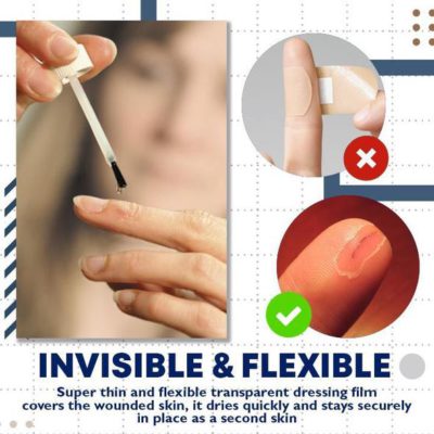 Super thin and flexible transparent dressing film covers the wounded skin, it dries quickly and stays securely in place as a second skin to facilitate natural healing of wounds.