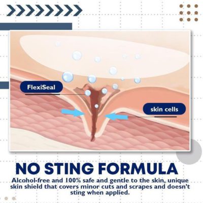 Alcohol-free and 100% safe and gentle to the skin, unique skin shield that covers minor cuts and scrapes and doesn’t sting when applied.