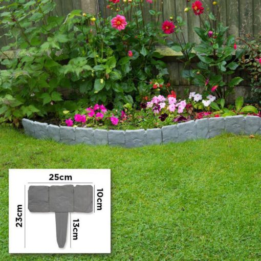 - Imitation Plastic Stone Garden Fence is perfect forĀ trimming your plant beds,Ā garden paths,Ā lawn edges,Ā etc. This is muchĀ cheaper than inlaid real stone. You can also use more design options because you canĀ easily adjust and reset the lawn boundaries