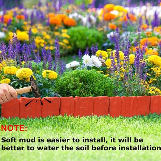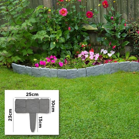 - Imitation Plastic Stone Garden Fence is perfect forĀ trimming your plant beds,Ā garden paths,Ā lawn edges,Ā etc. This is muchĀ cheaper than inlaid real stone. You can also use more design options because you canĀ easily adjust and reset the lawn boundaries