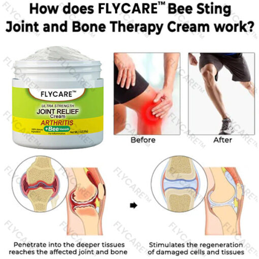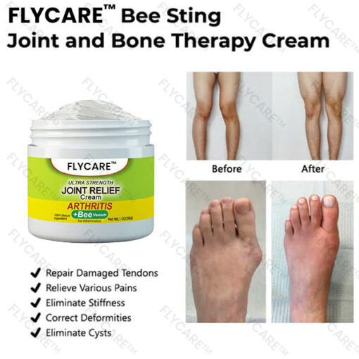 FLYCARE™ Bee Sting Joint and Bone Therapy Cream is a powerful, natural solution designed to repair damaged tendons, relieve various pains, and promote overall joint and bone health. With its advanced transdermal technology and unique formulation, this cream offers targeted relief, improved mobility, and a holistic approach to your well-being.