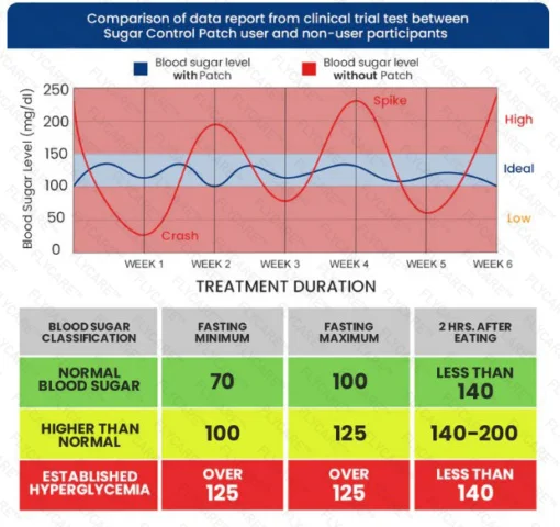 FLYCARE™ Blood Sugar Control Patch also helps to reduce the amount of glucose produced by the liver and also increases the sensitivity of your muscle and fat cells to insulin. This leads to a reduction in the amount of glucose in your bloodstream, which helps to lower your blood sugar levels.